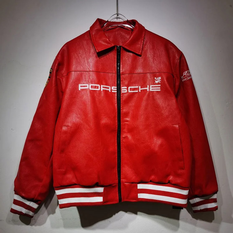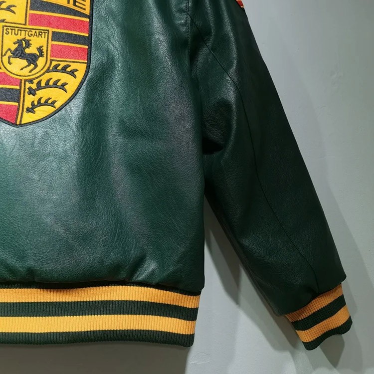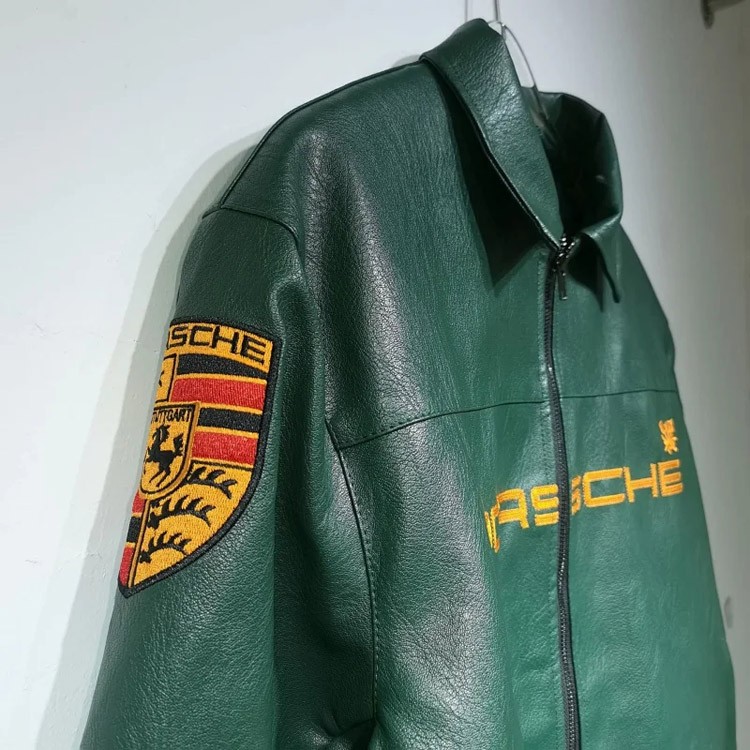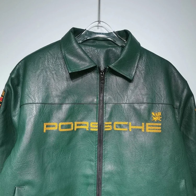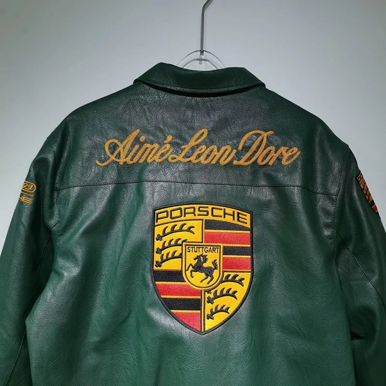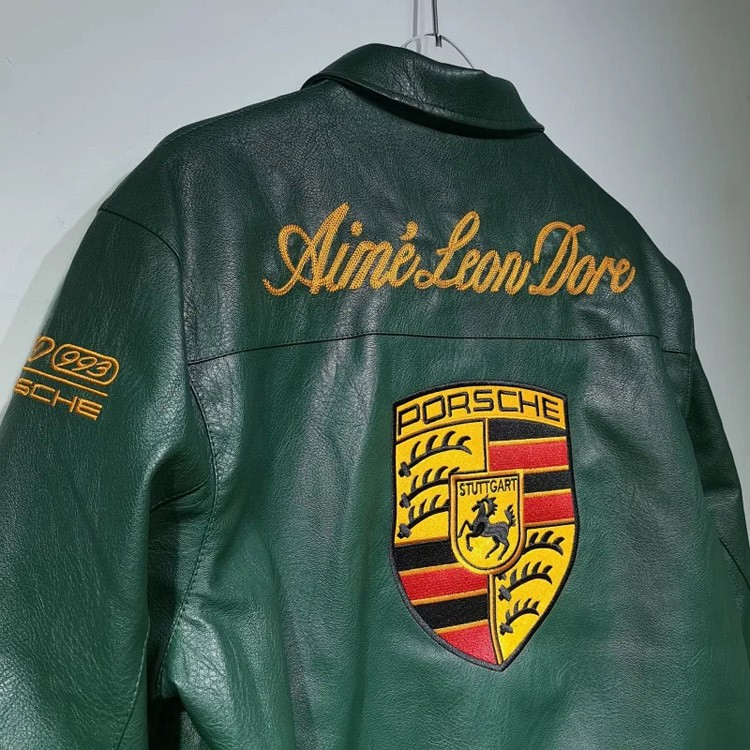 Aime Leon Dore x Porsche Leather Embroidered Zip-Up Ribbed Jacket-5015