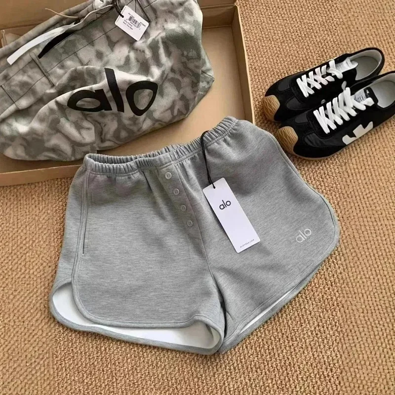 ALO 2025 Summer Niche All-match Letter Elastic Waist Casual Sports Fitness Shorts Hot Girl Pants Women-2439