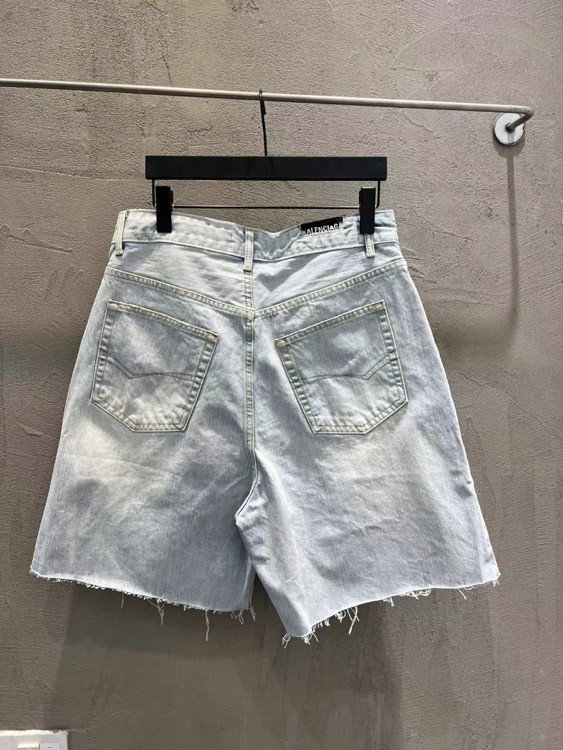Balenciaga new drawstring washed loose straight-leg denim shorts-5489
