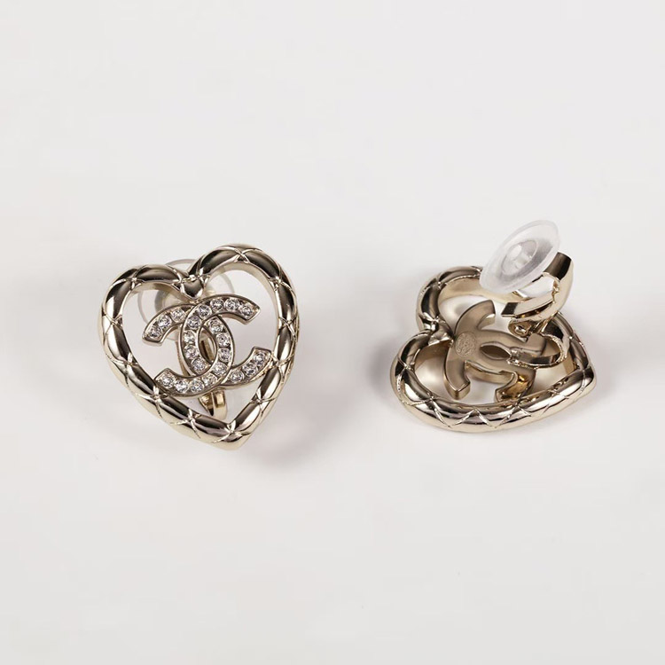 Chanel gold diamond heart hollow double c rhinestone ear clip-3754