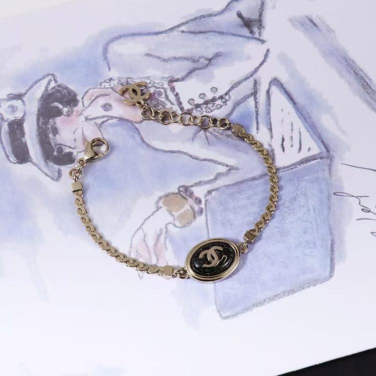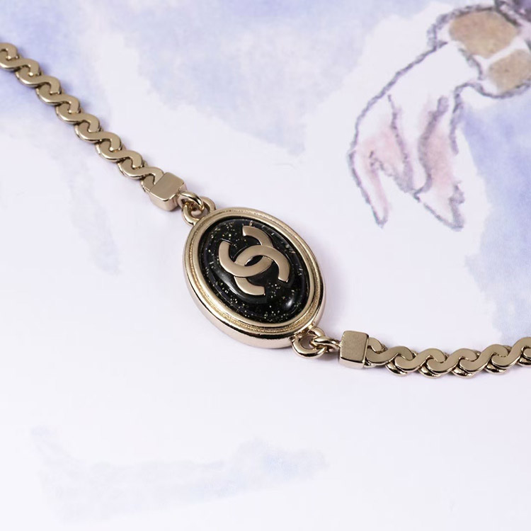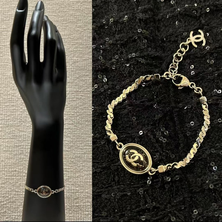 Home > Chanel gold oval black fine flash double c letter snake bone bracelet-3740