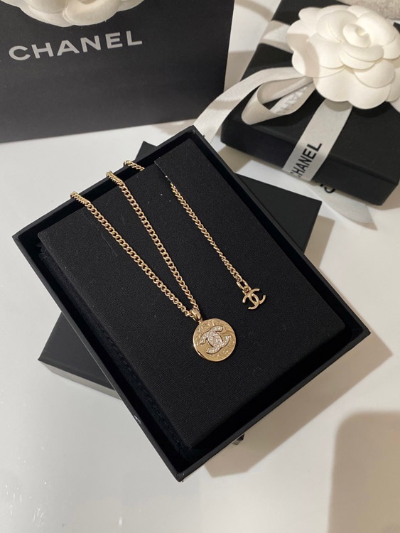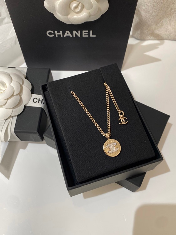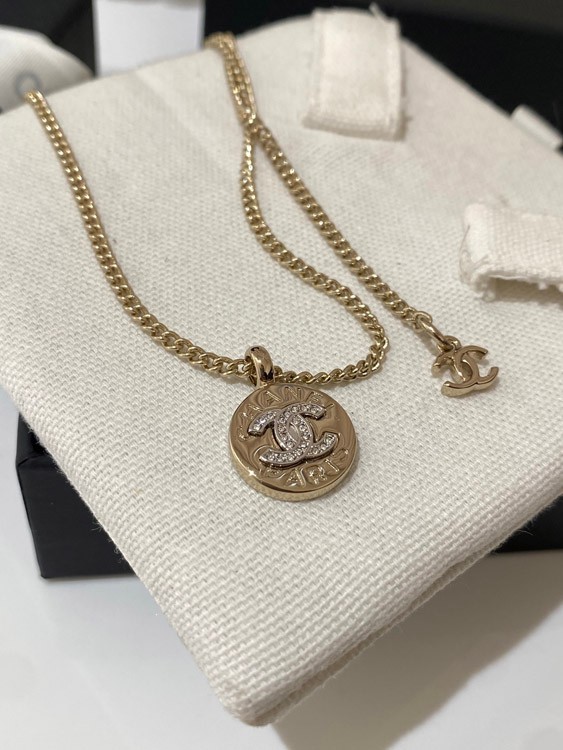 Chanel light gold gold and silver color matching round necklace-3593