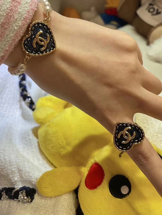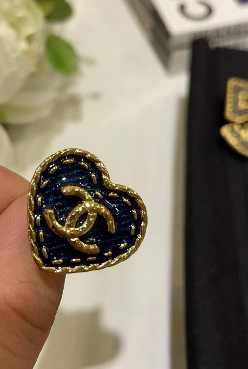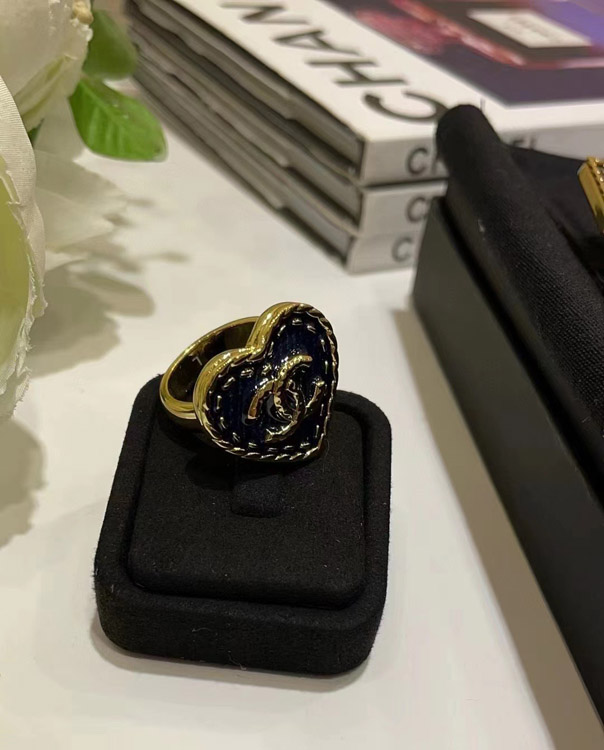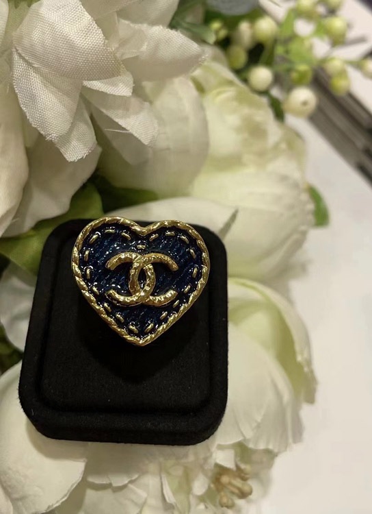 Chanel vintage gold double C denim pattern love ring-3738