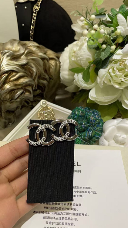 Home > Chanel White Enamel Double C Silver Earrings-3743