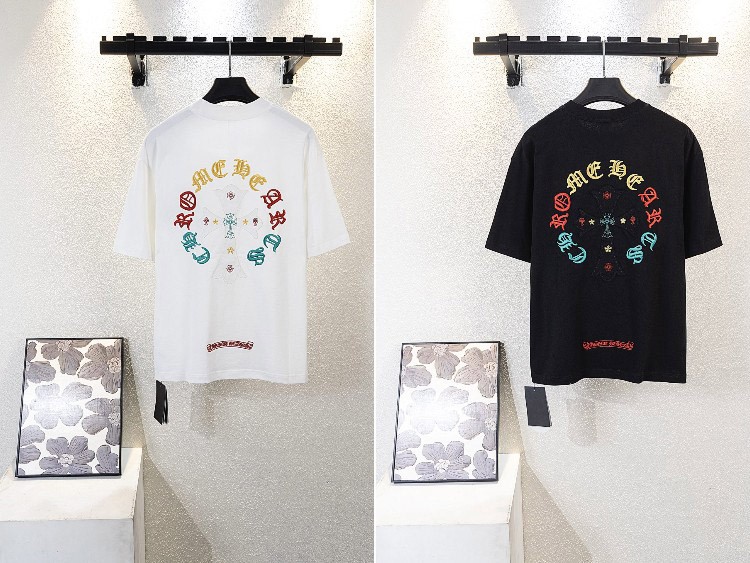 Chrome Hearts CH new colorful Sanskrit letter embroidered short-sleeved T-shirt-5418