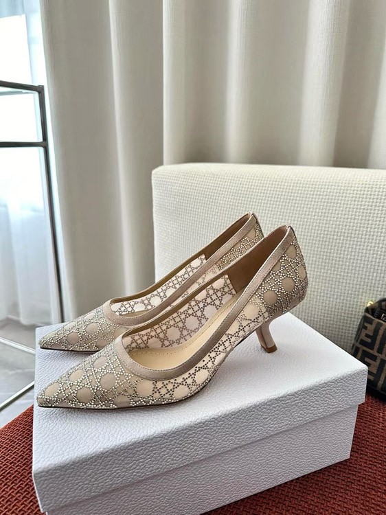 DIOR Capture pointed-toe mesh slingback kitten heels with rhinestone embellishments-5207