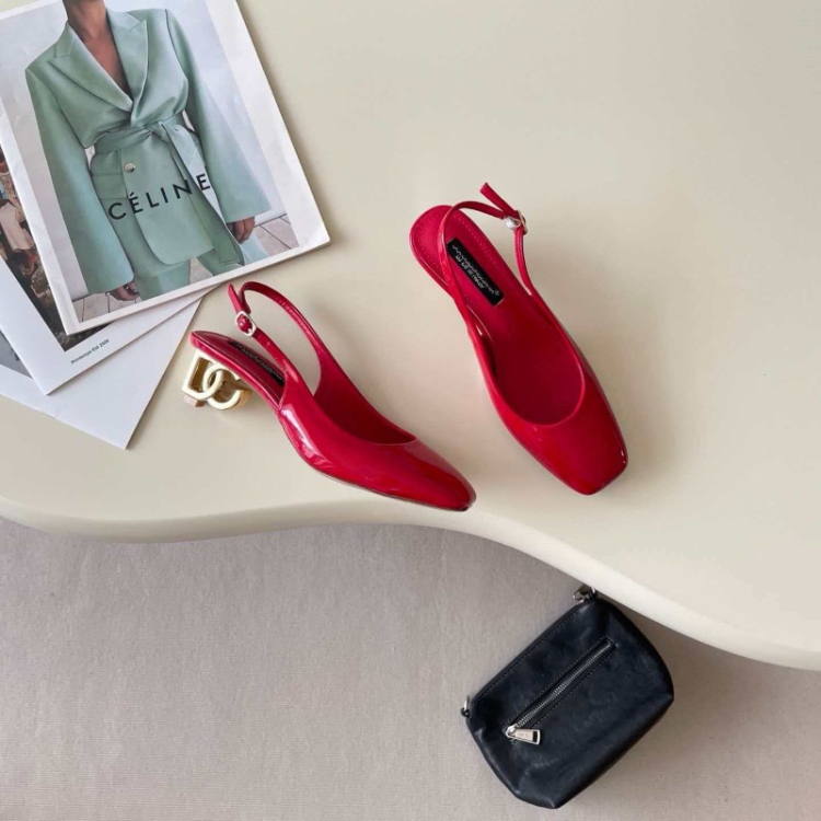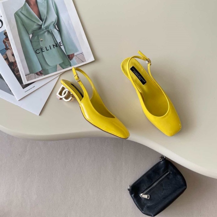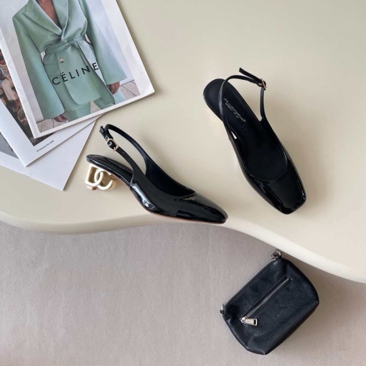 Dolce & Gabbana DG new square-toe open-back metallic high heels-5721
