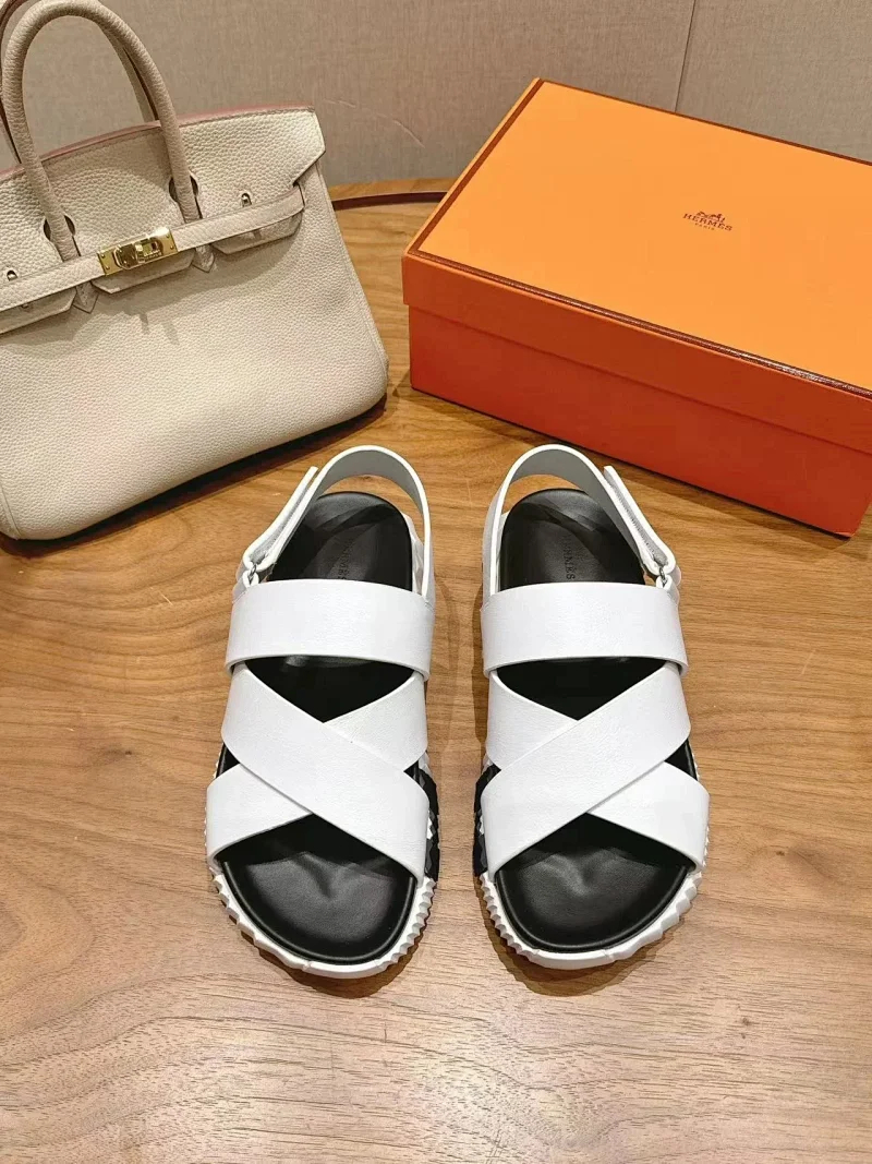 Hermes calfskin round-toe open-toe sandals-5569