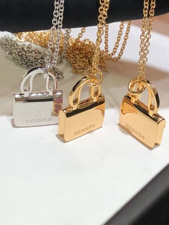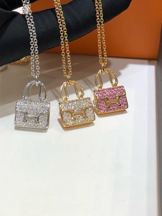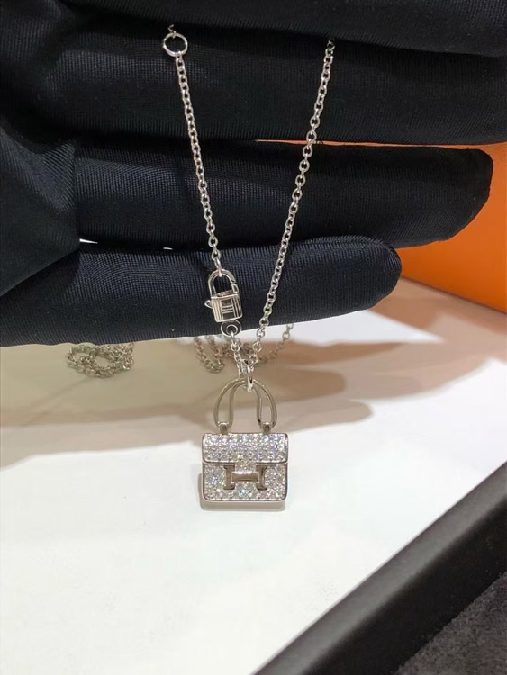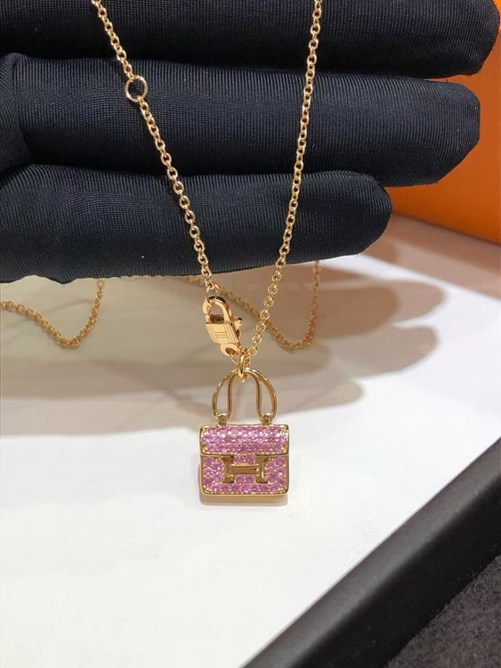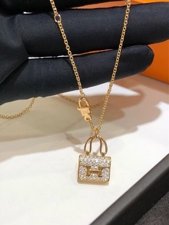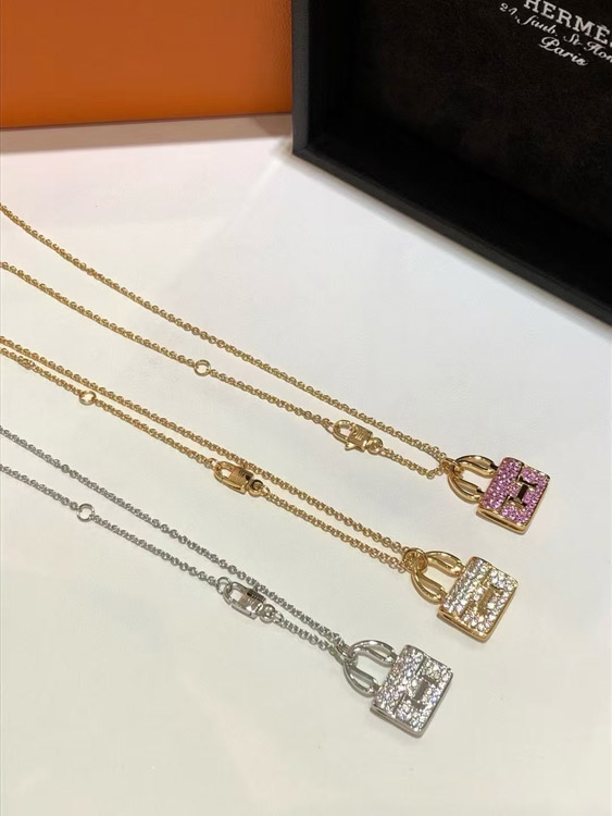 Hermes padlock diamond rose gold pendant chain necklace-3837