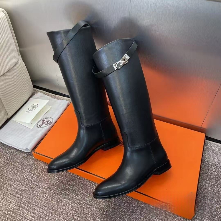 Hermès new high-top buckle riding boots-5694