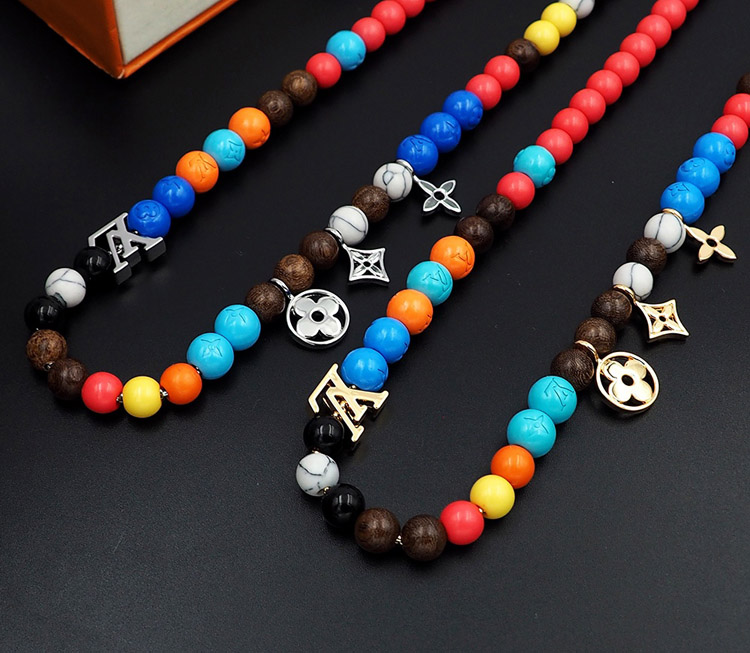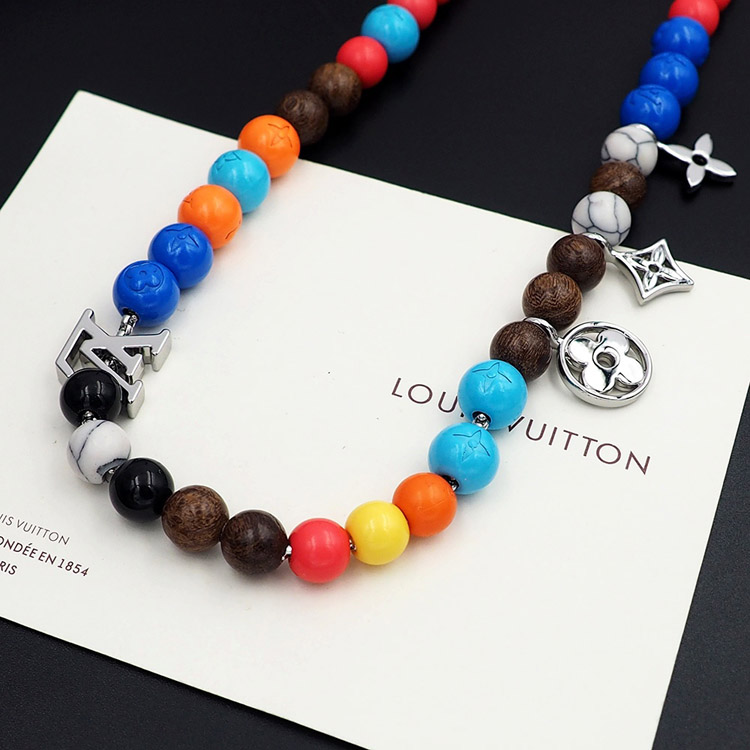 Louis Vuitton LV adjustable cord embellished wooden inscription metal beaded necklace-3950