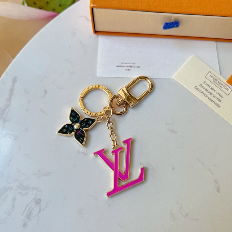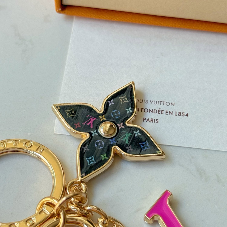 Louis Vuitton LV black tricolor old flower pink letter keychain-3761