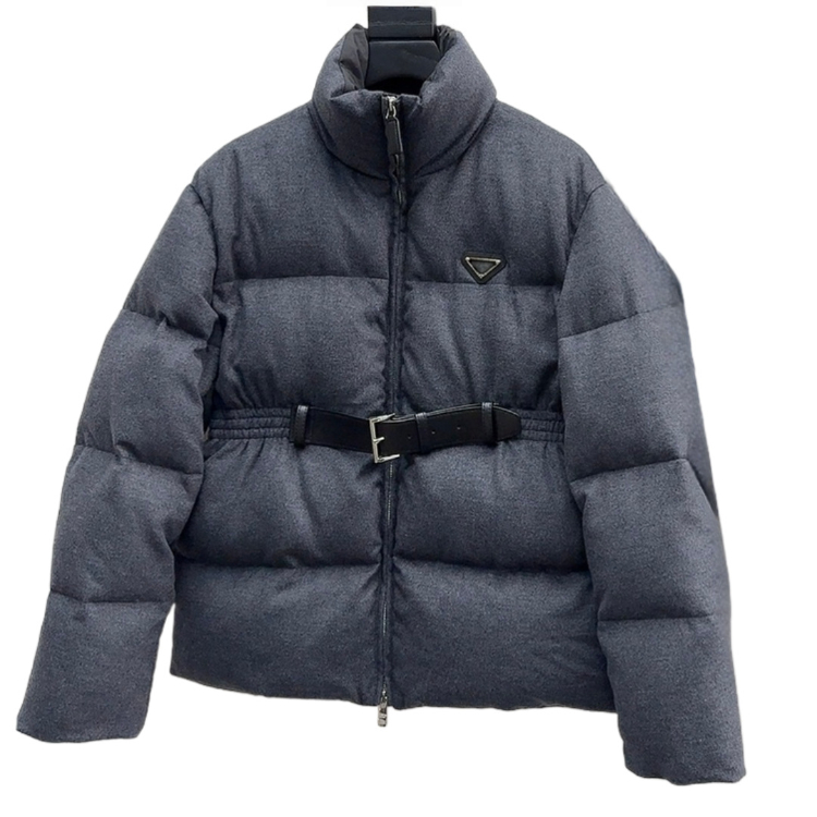 Prada stand-collar wool fabric long-sleeved belted thickened warm down jacket-5346