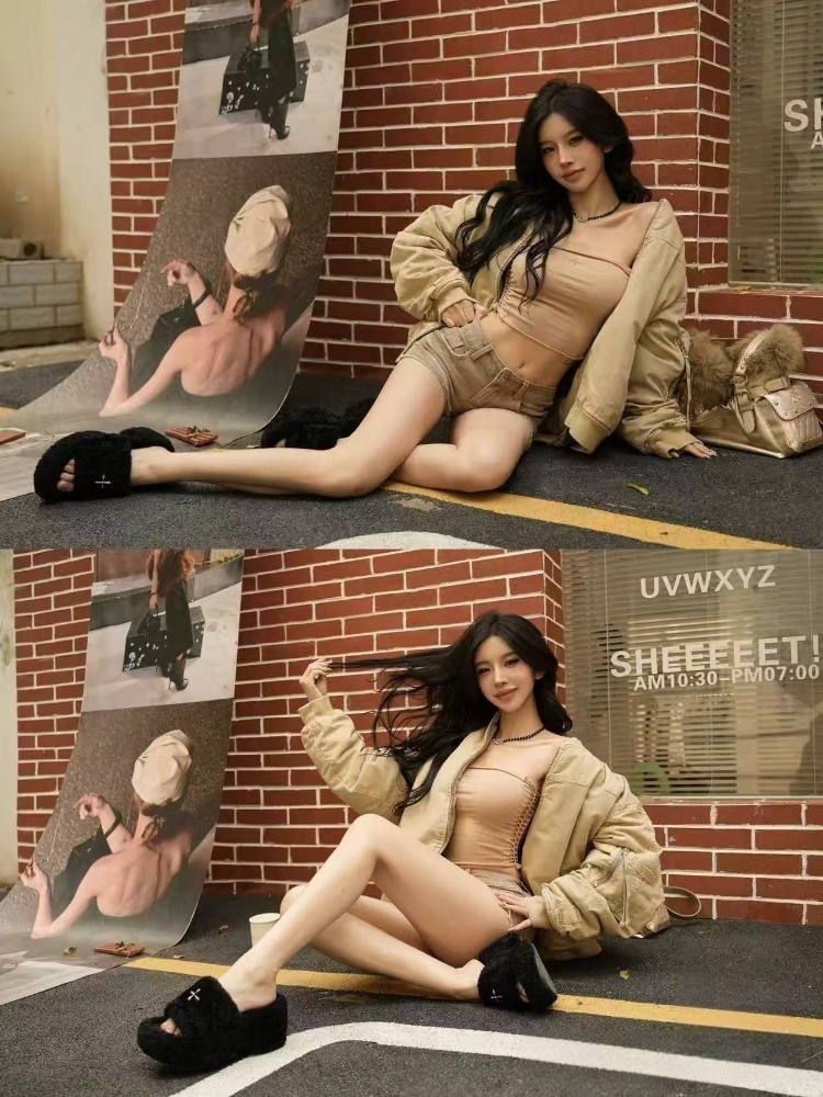 SMFK Non-slip Platform Wedge Velvet Slippers-5696