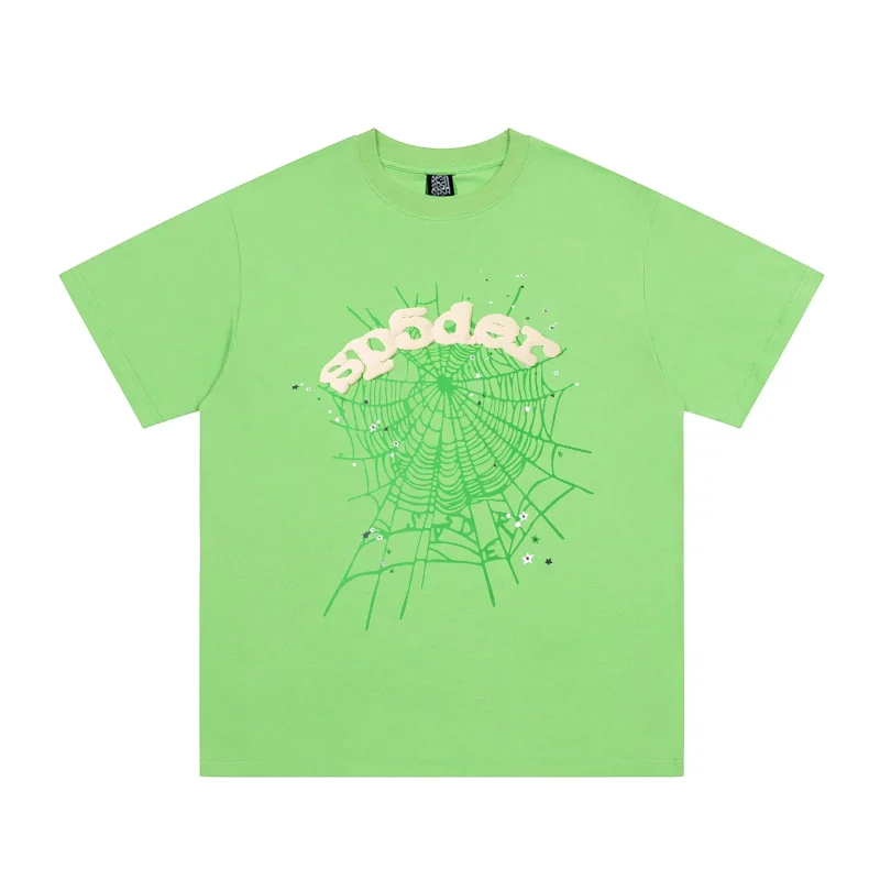 SP5DER Spider Web Foam Print Loose Casual Top T-Shirt-1861