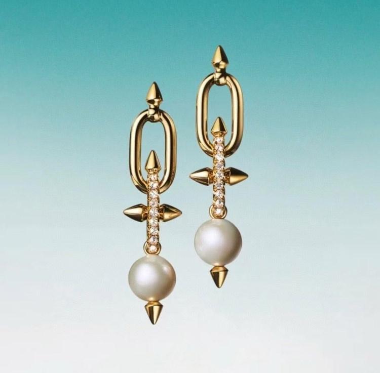 Tiffany diamond pearl rivet earrings-3679