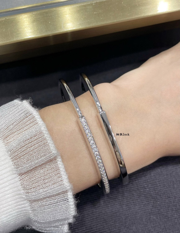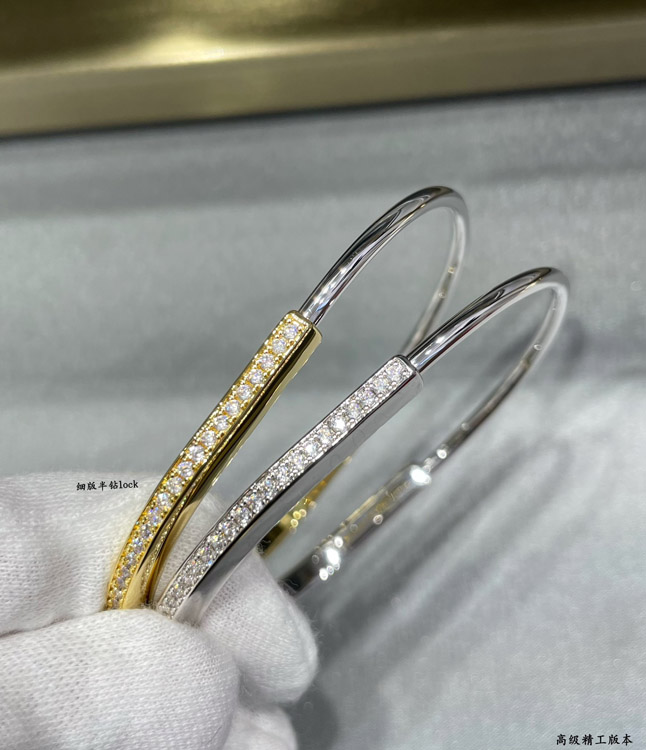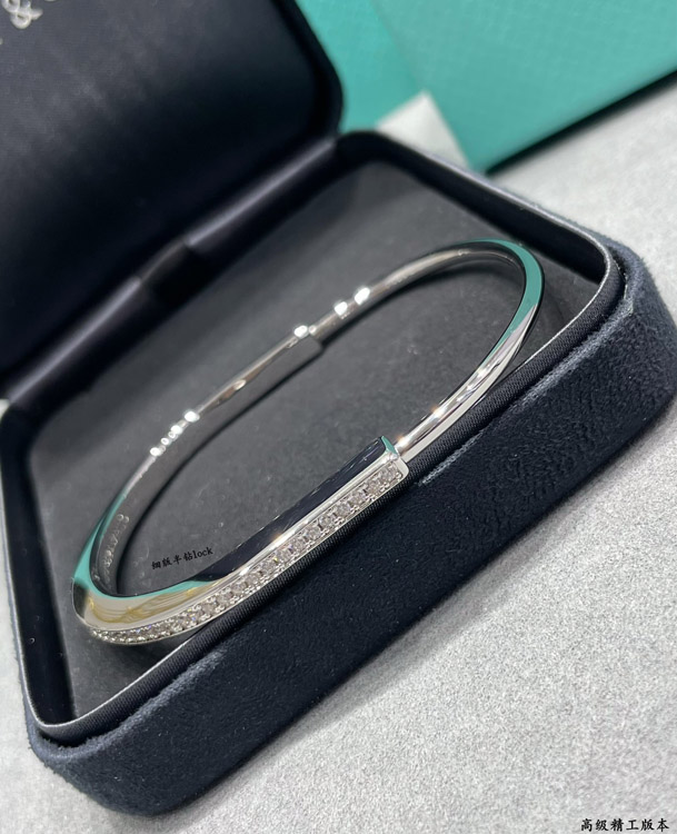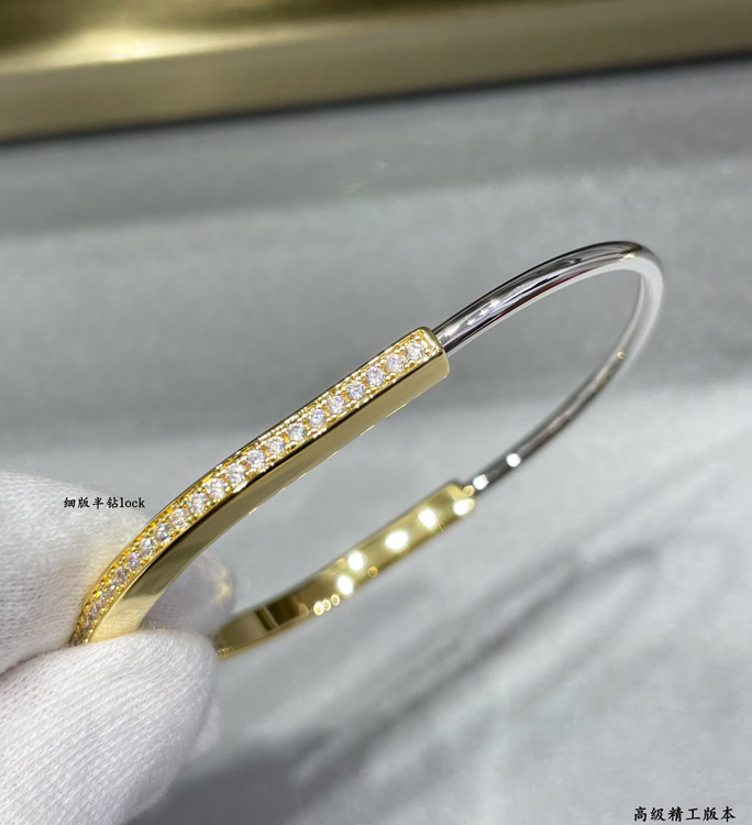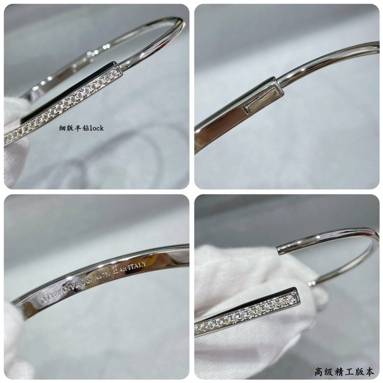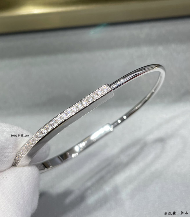 Tiffany thin half diamond lock bracelet-3968