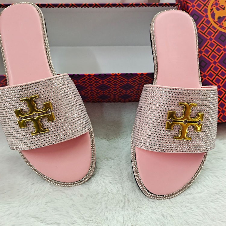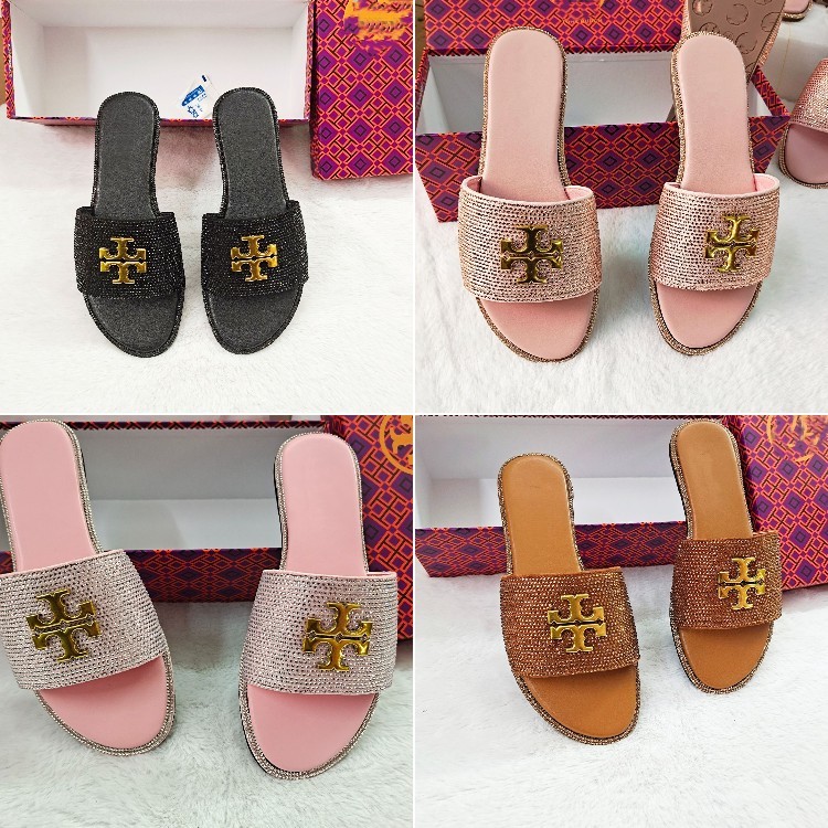 Tory Burch flat sandals with rhinestone embellishments-5647