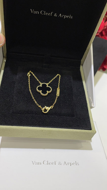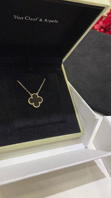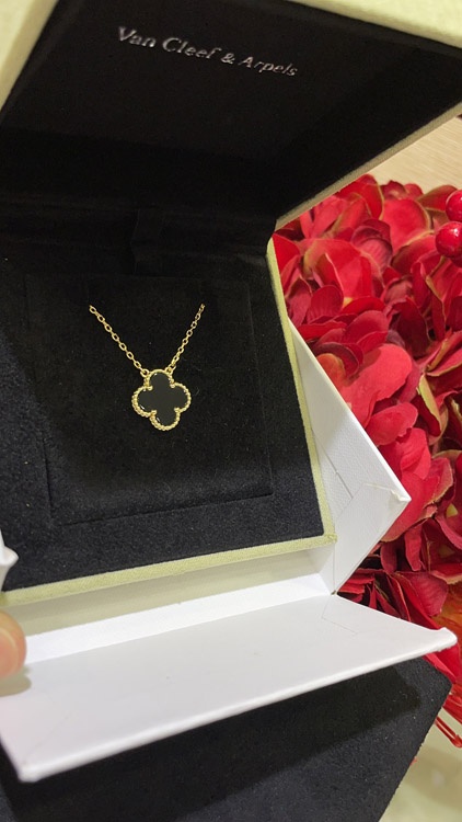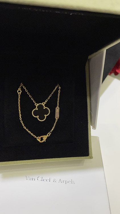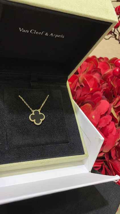Home > Van Cleef & Arpels Black Onyx Four-Leaf Clover Gold Necklace-3887