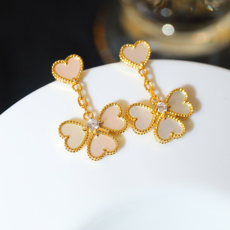Van Cleef & Arpels heart border diamond mother-of-pearl earrings necklace-3768