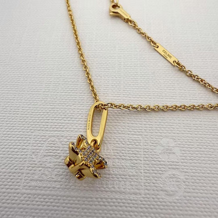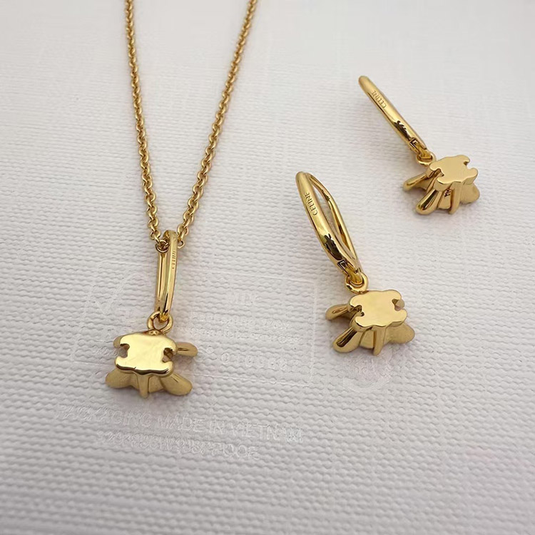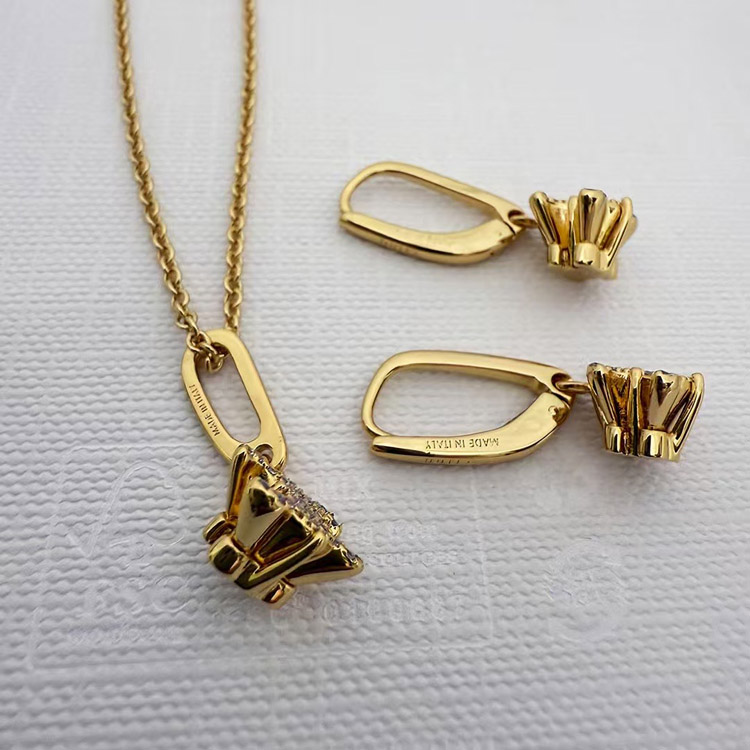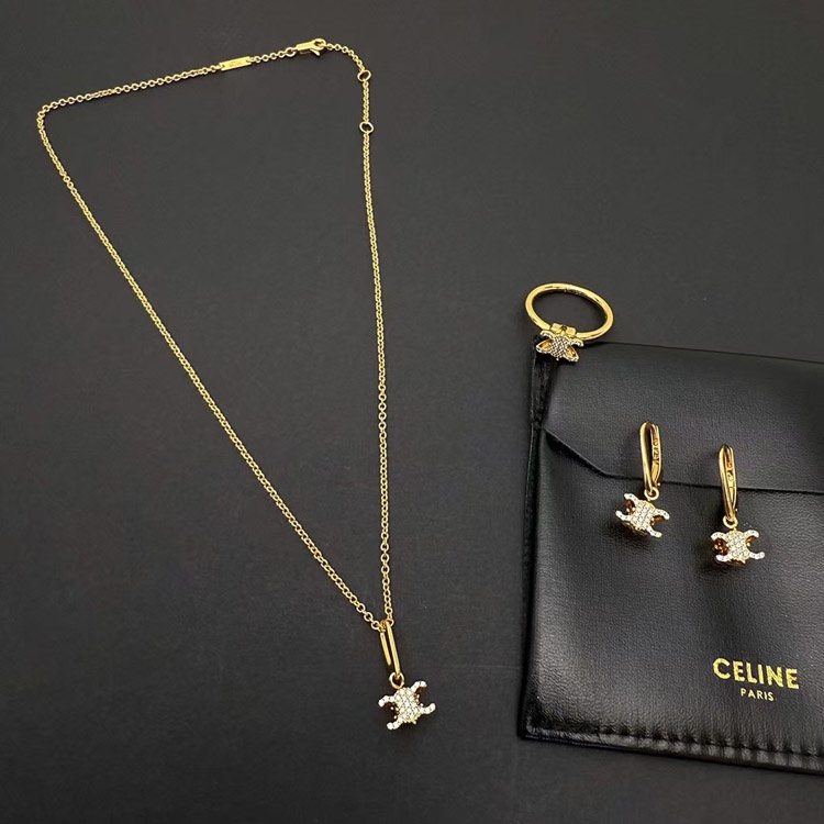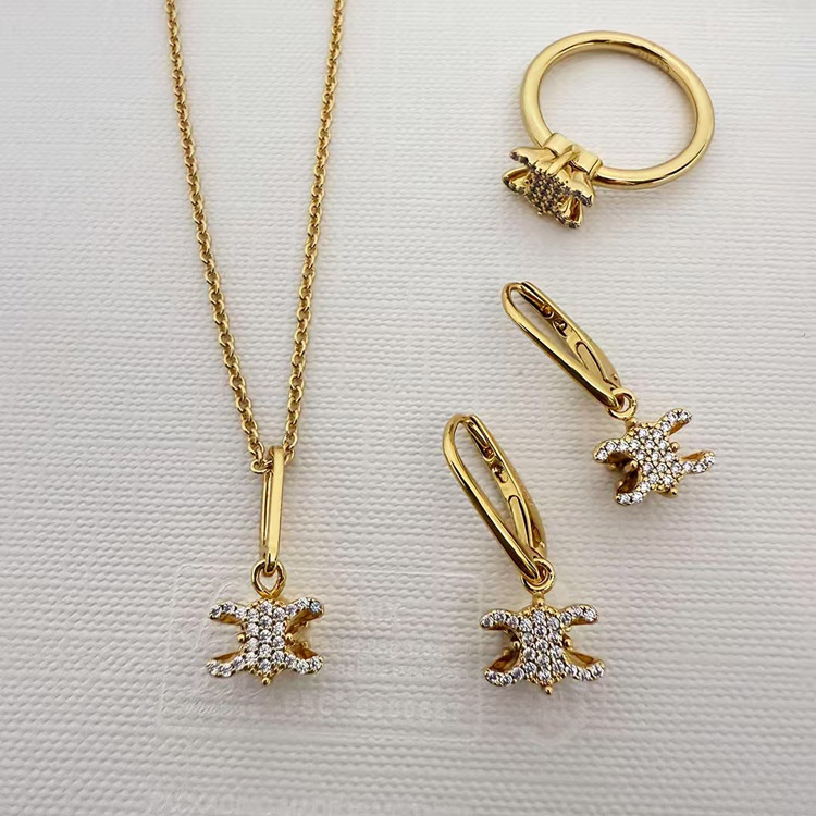 Home > Celine Gold Arc de Triomphe Full Diamond Logo Necklace Earrings-3736