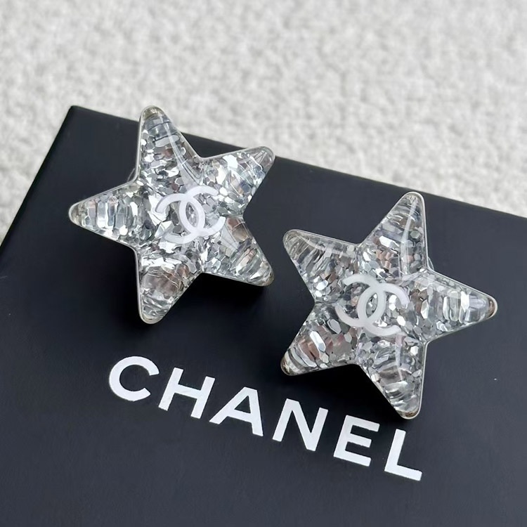 Chanel earrings white double c silver sequins acrylic star earrings-3744