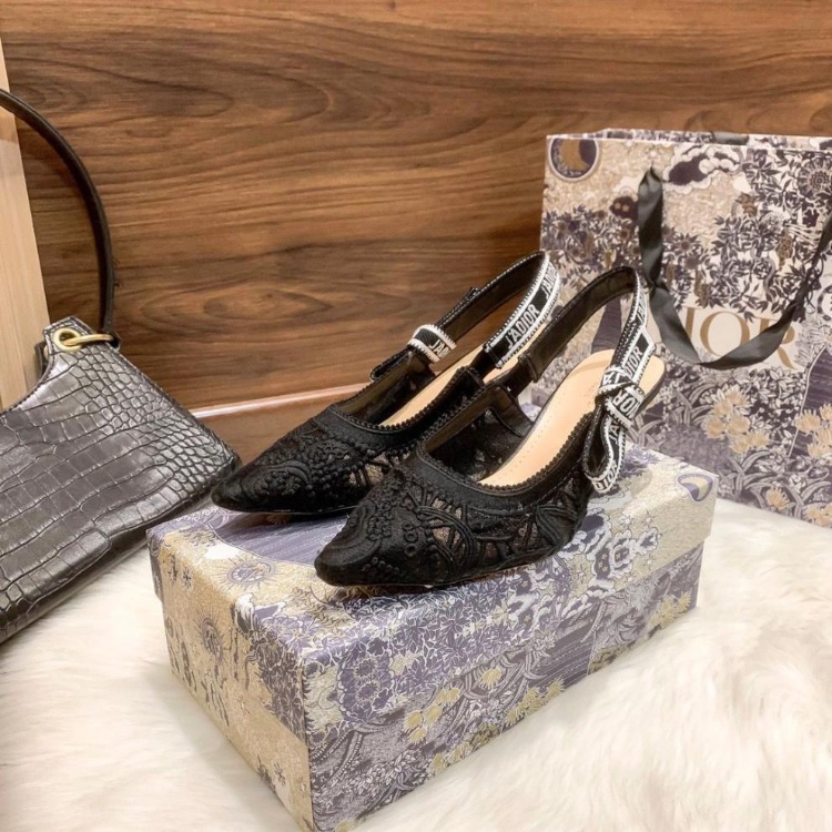 Dior's new lace pointed-toe slingback heels with a thin heel-5614