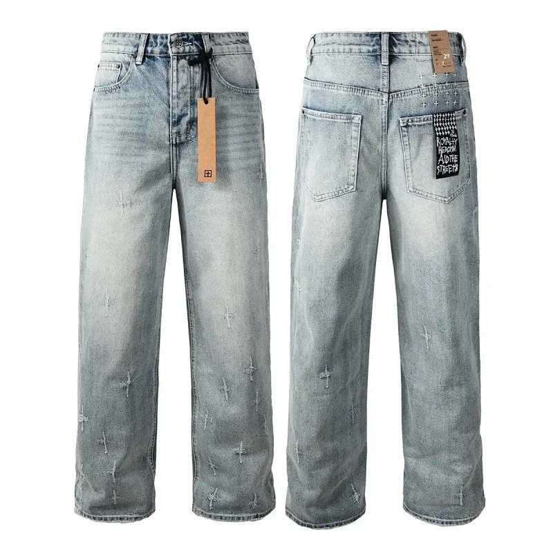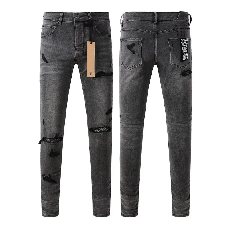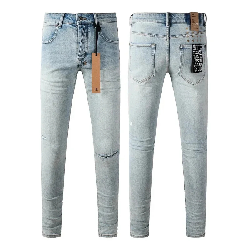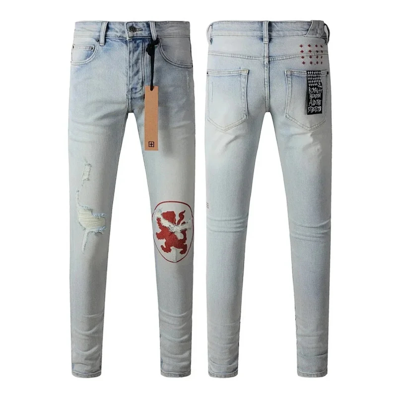 KSUBI men's casual light color vintage distressed washed skull print slim fit jeans (840 styles)-2472