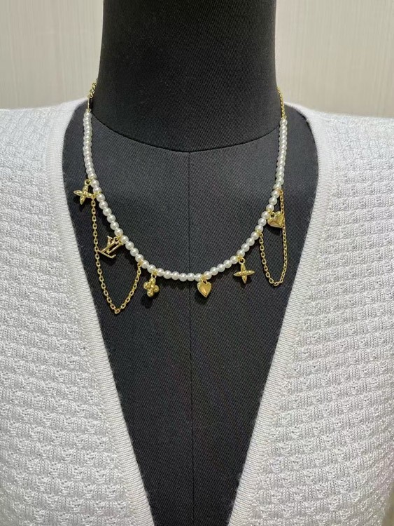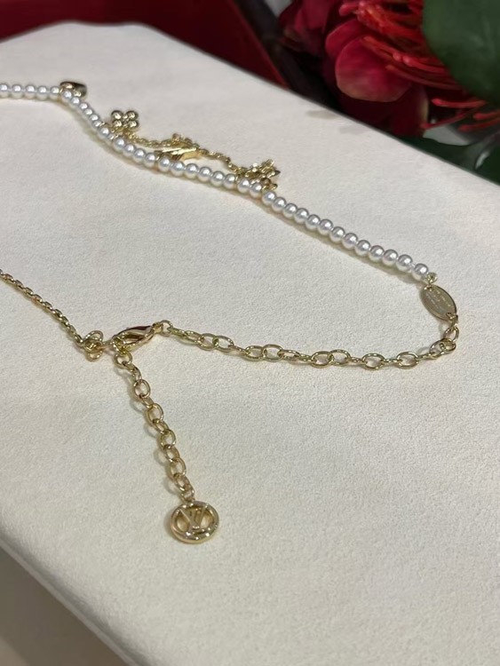 Louis Vuitton LV Gold Letters Old Flower Pearl Necklace-3721
