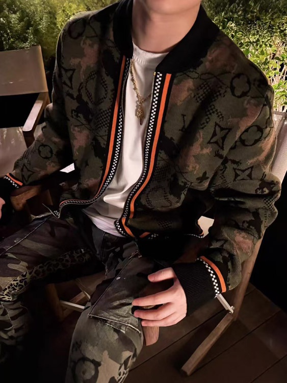 Louis Vuitton LV new jacquard wool bomber knit sweater camouflage jacket-5218