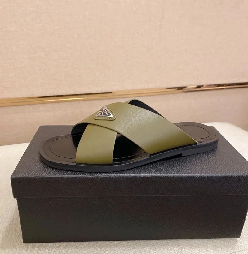 Prada Ultralight Breathable Leather Cross Slippers-5553