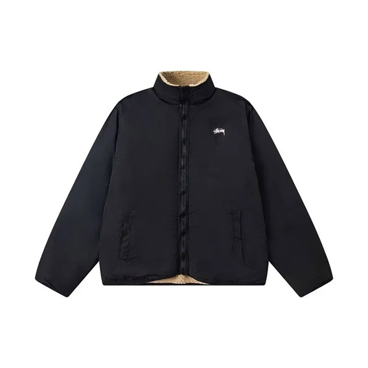 Stussy fleece double-sided zip-up collar warm jacket-4760