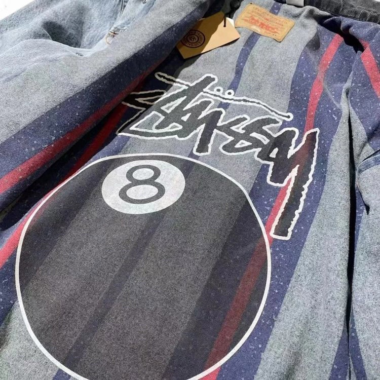 Stussy x Levi's collaboration denim jacket with embossed logo design-4800