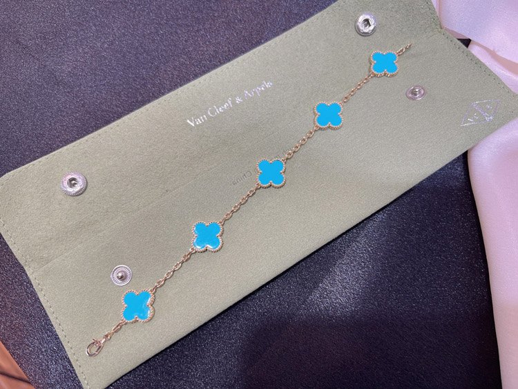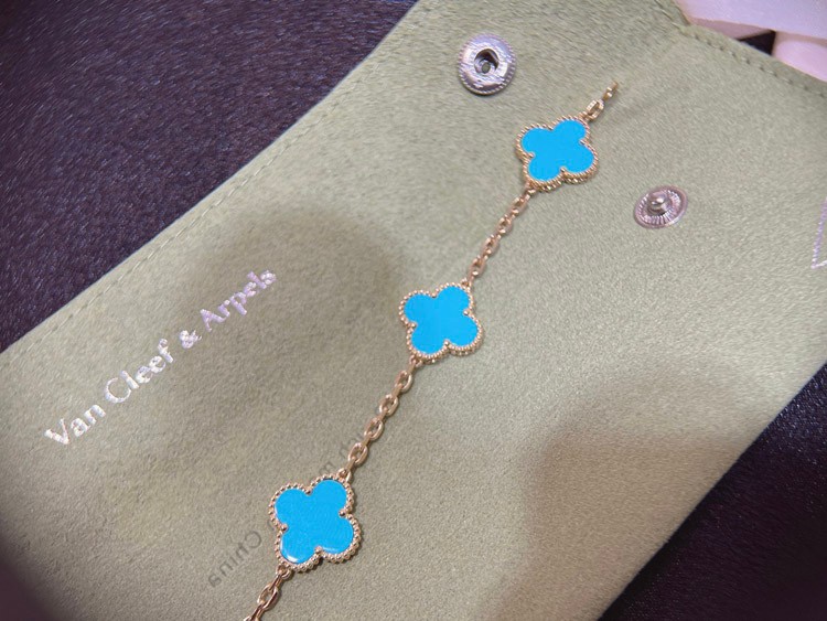 Van Cleef & Arpels five-flower turquoise bracelet-3910